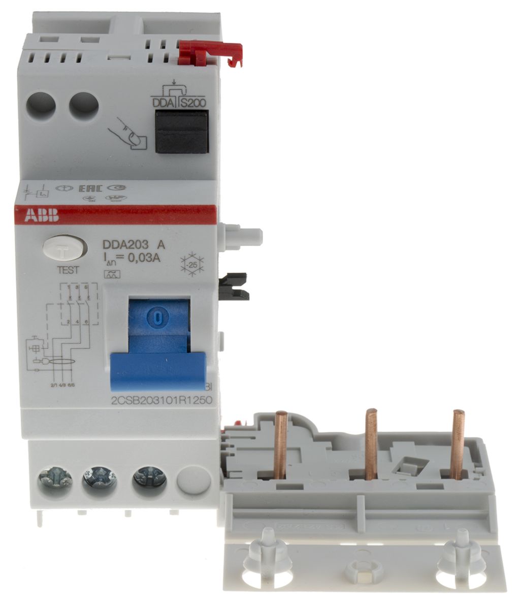 "ABB 3P, 25A Instantaneous RCD Switch, Trip Sensitivity 30mA, Type A, DIN Rail Mount" added to the basket