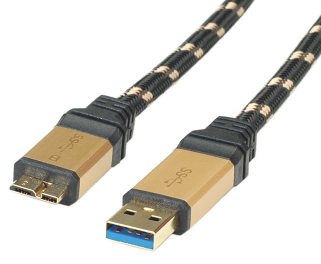 Roline Male USB A to Male Micro USB B Cable, USB 3.0, 800mm