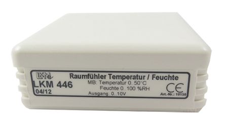 The LKM 445 / 446 is a low cost internal temperature and humidity sensor which has an integrated measuring transducer and two voltage outputs. The sensor allows the user to measure the temperature and moisture levels in buildings, plants and switch cabinets. This temperature sensor can be connected directly to an evaluation unit that also has voltage inputs such as PC cards or PLCs plus is supplied fully calibrated. The LKM 445 / 446 sensors have an accuracy of + / 0.5 °C plus a relative humidity of 3%. two controllers are supplied enabling users to carry out minor corrections on site. The sensor is also only suitable for use within enclosed spaces and when mounting the sensor special attention should be paid to positioning the sensor. There is a cable outlet at the back of the sensor and a lateral cable outlet is an available option. This temperature / humidity sensor has a protection class and users have the option to switch to a temperature range of -20 to 80°C.