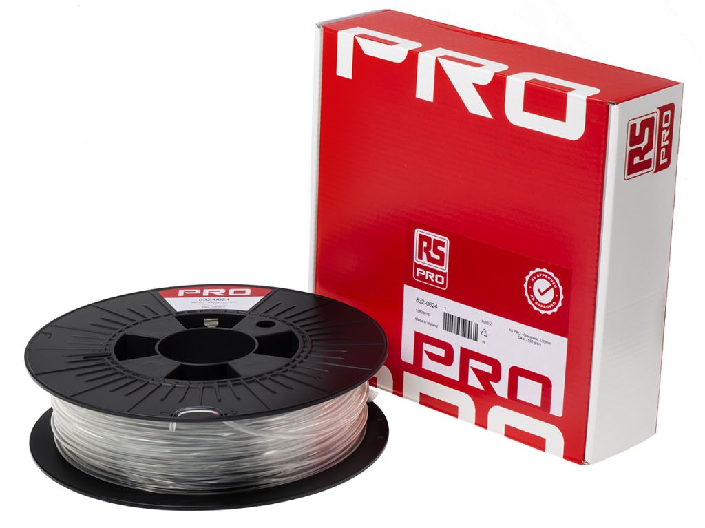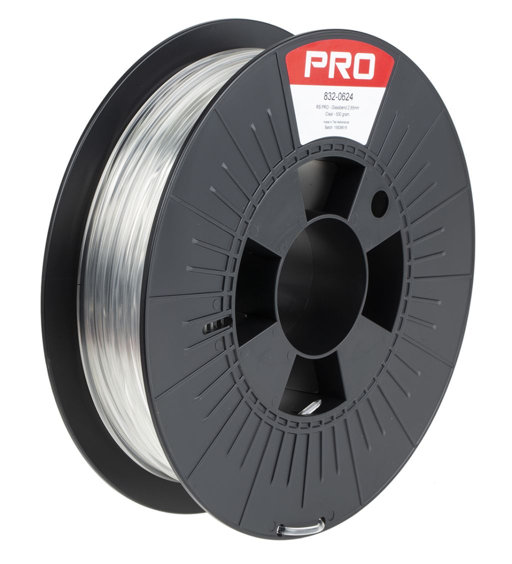 Product description RS PRO 2.85mm Clear GLASSBEND 3D Printer Filament, 500g