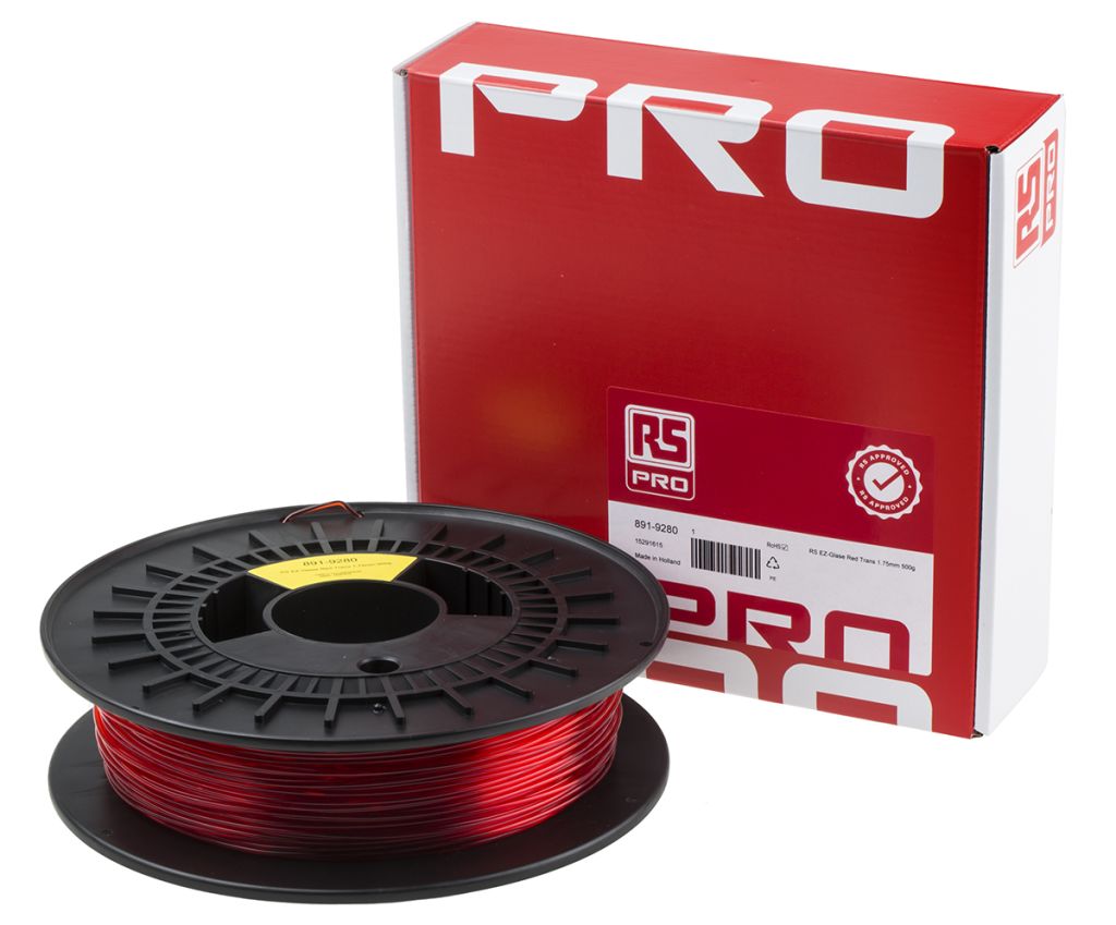 Product description RS PRO 1.75mm Translucent Red PET-G 3D Printer Filament, 500g