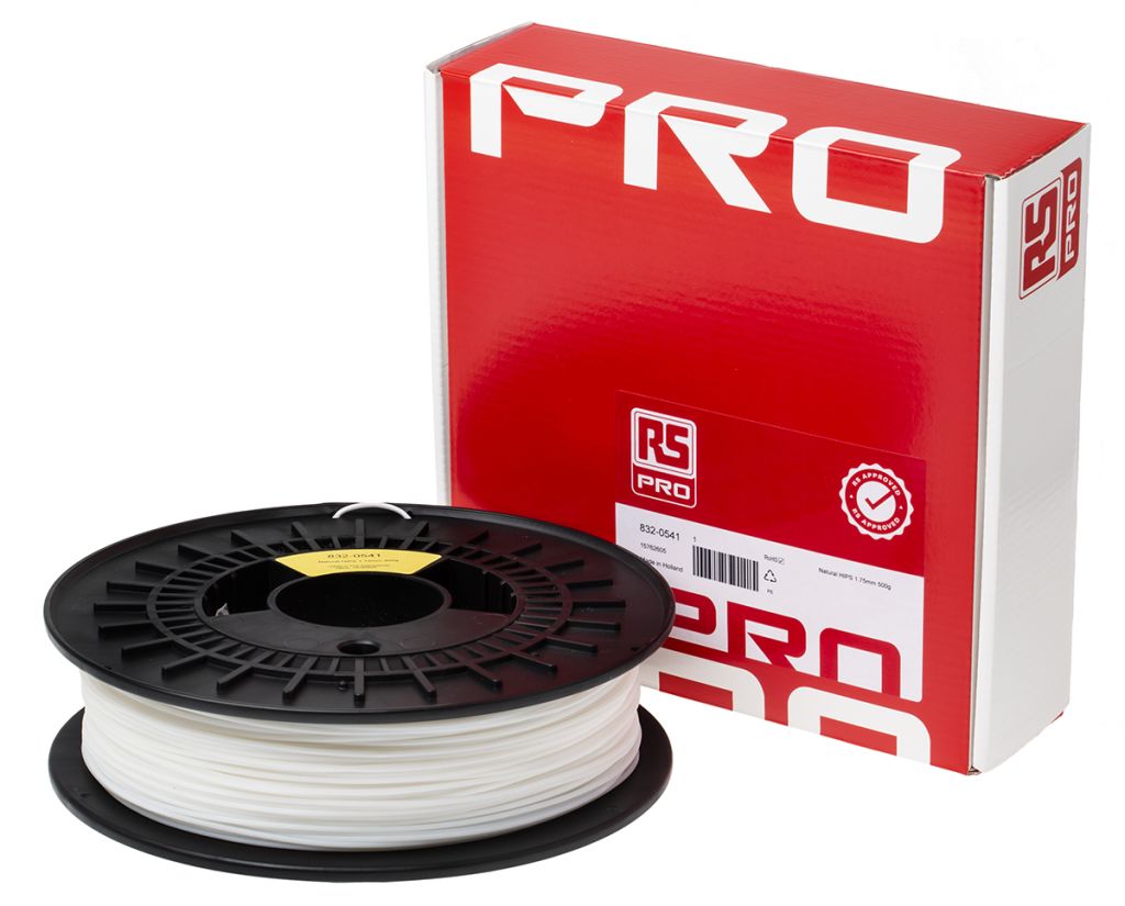| Product description | RS PRO 1.75mm Natural HIPS 3D Printer Filament, 500g |