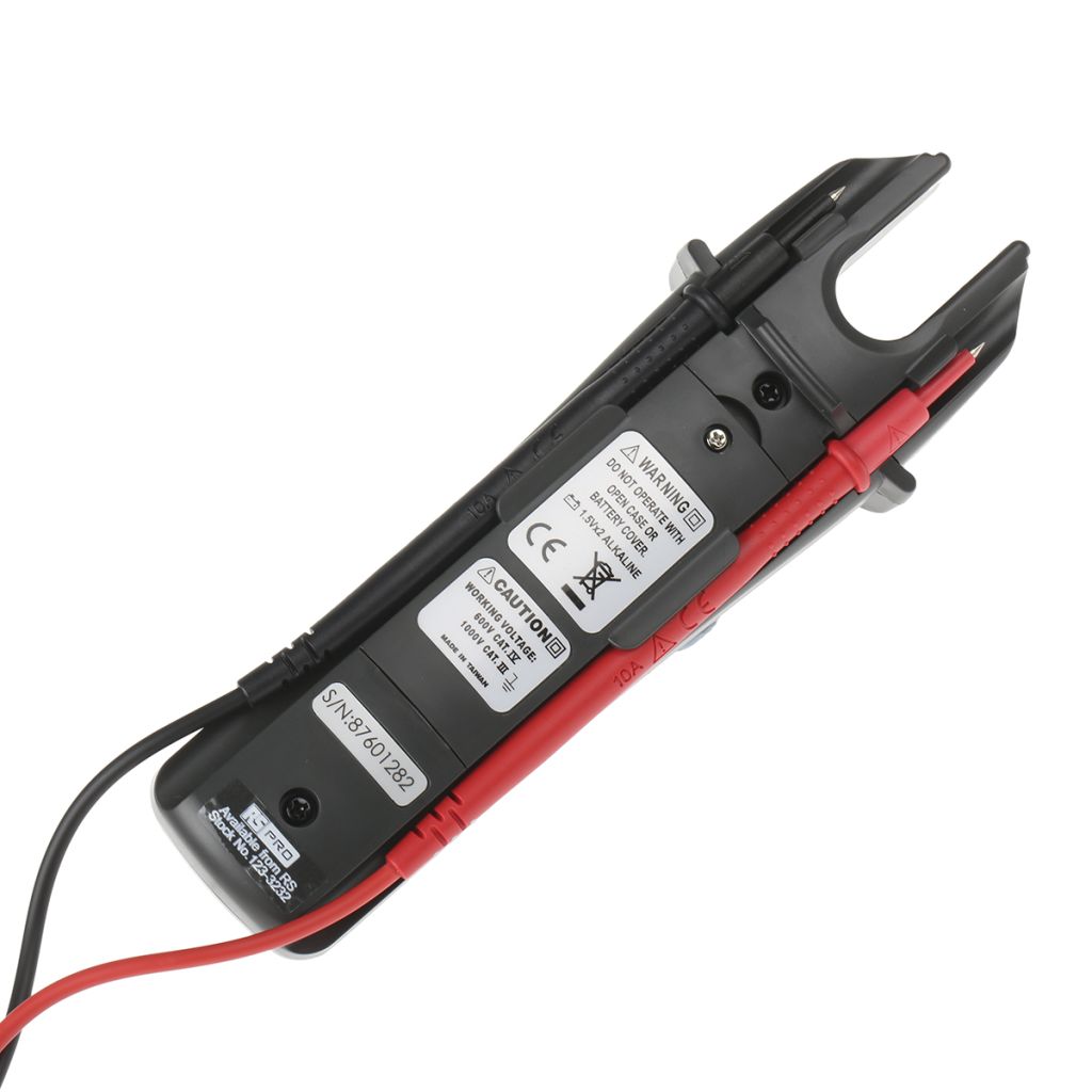 This current clamp meter is designed for current measurement in electrical testing, and combines a digital multimeter with a clamping current sensor. The nature of the clamp means that it can fit around a wire at any point to sense AC current, voltage and continuity. This has the advantage of allowing electricians to take a reading from a conductor without touching it, which is both more convenient and safer than other methods. As this is an open clamp clampmeter, it is ideal for quicker readings