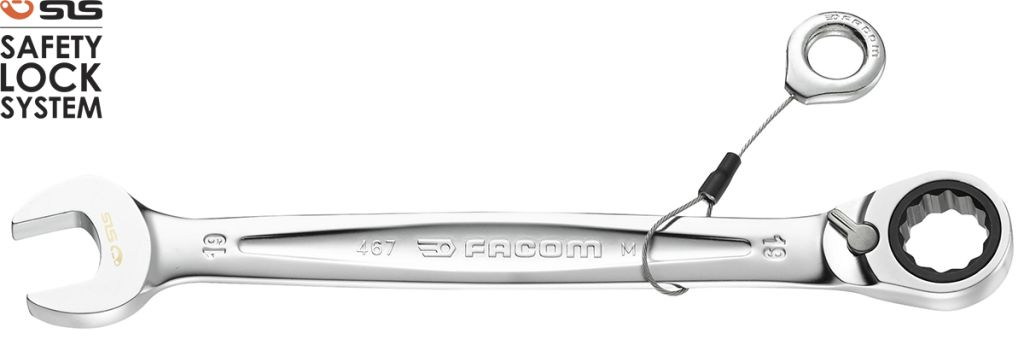 • A combination ratchet spanner equipped with the Facom SLS attachment solution, preventing the risk of accidental falls