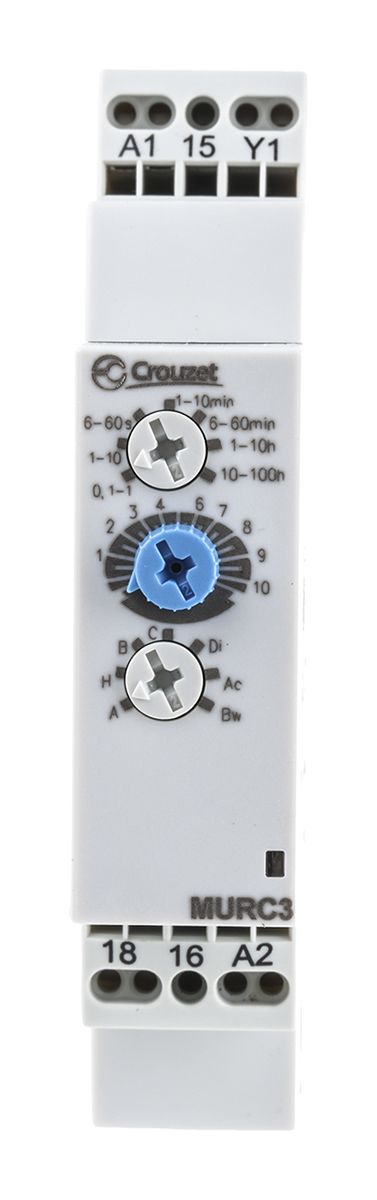 | Product description | Crouzet SPDT Multi Function Timer Relay, 12 → 240V ac/dc 0.1 s → 100h, DIN Rail Mount |