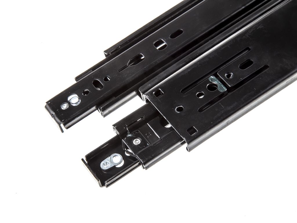 From Accuride the DB3832 range of telescopic ball bearing side mounting drawer runners with a full 100% extension capability made from durable black zinc plated steel. These runners are able to hold up to 50 kg