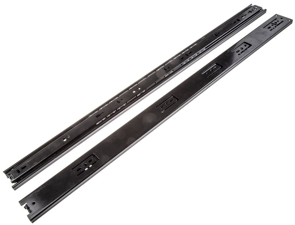 From Accuride the DB3832 range of telescopic ball bearing side mounting drawer runners with a full 100% extension capability made from durable black zinc plated steel. These runners are able to hold up to 50 kg