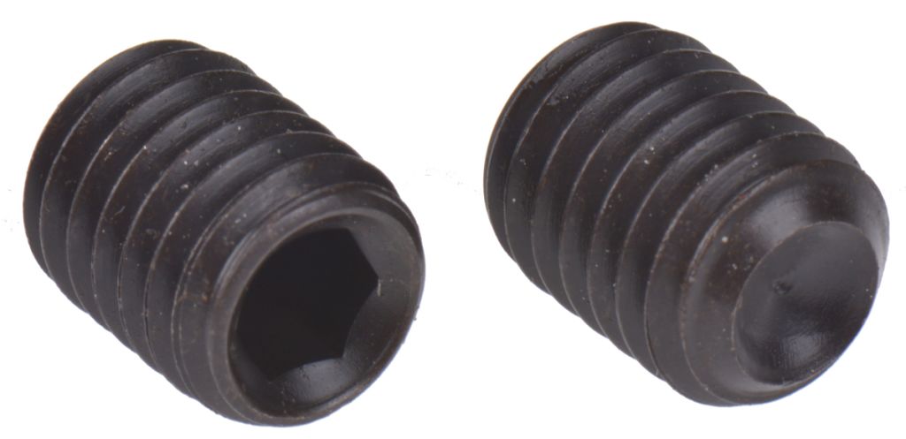 RS PRO range of hexagon grub screws features excellent capabilities within machine repair and fixing applications. Grub screws have no head (also known as headless or blind) and it is simply a threaded fastener to secure an object within another. They are generally used in tight areas where you do not want the head sticking out, or a little bit countersunk from the top of the material so nothing can hit it and interfere with the operation of the application. You tighten or undo them, using an Allen key or a hex key. They can have various tip point types which include:
