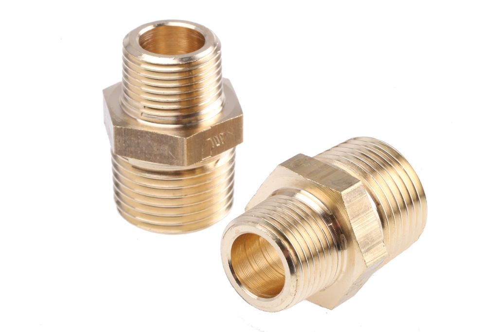 This straight adapter has two male connections with BSPT threads.