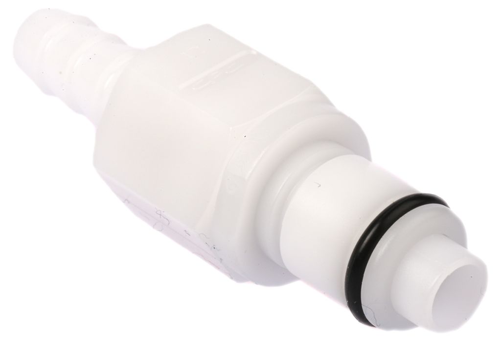 Durable and resistant to most mild chemical solutions, these injection moulded acetal thermoplastic couplings are ideal for pressure and vacuum in applications such as medical devices, ink handling, de-ionised water, beverage dispensing and mains water.