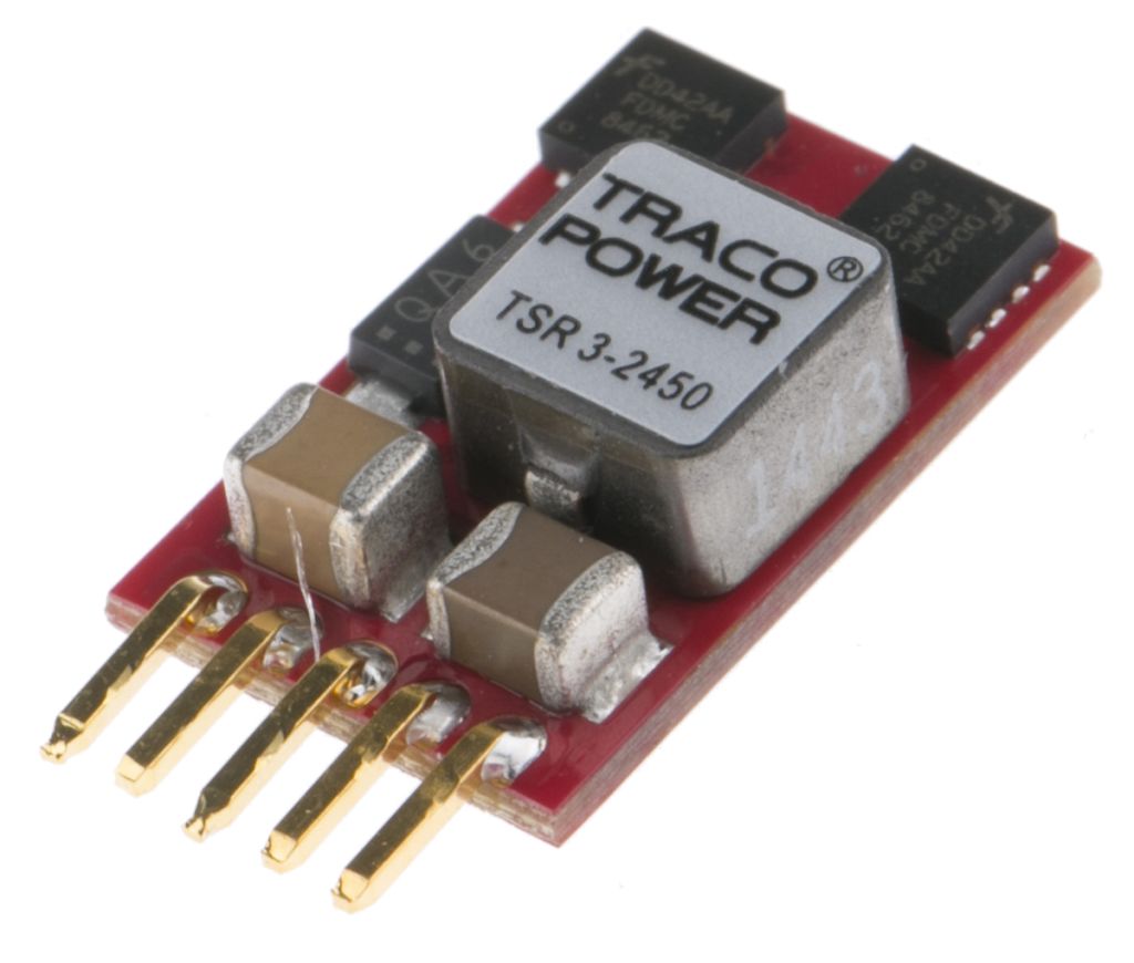 The Tracopower TSR-3 series of DC/DC converters are non isolated step-down switching regulators for point of load applications. These switching regulators have a high efficiency up to 95% which allows a full 3A load operation up to 50°C ambient temperature without the need of heat-sink or forced cooling. The TSR-3 DC/DC converters provide a remote on/off input and are the ideal solution for many battery powered applications.
