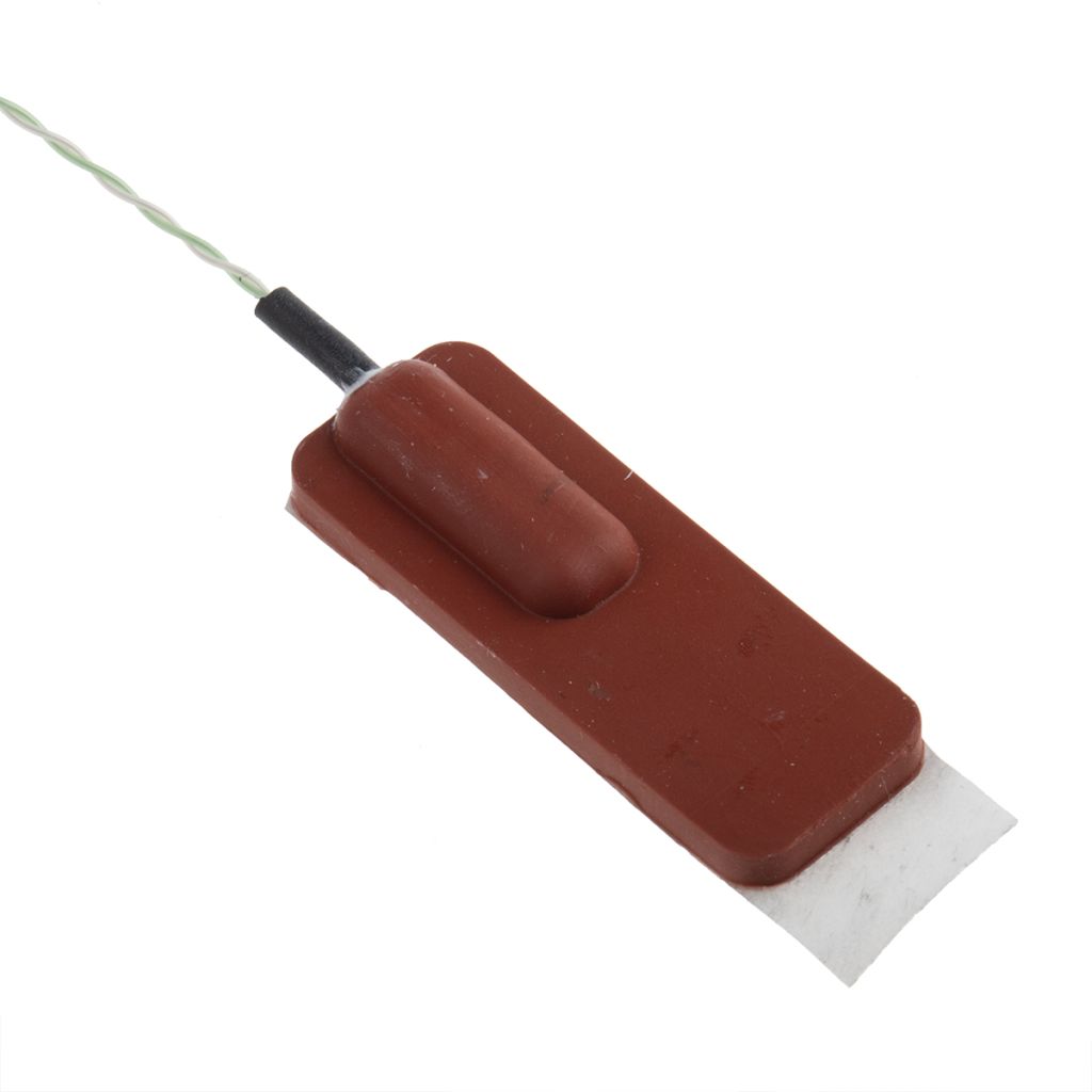 This thermocouple is designed for measuring the temperature on a surface. Most thermocouples have a sensing tip where there ends of the thermocouple wires are encased in sheaths or protection tubes which do not allow for measuring the temperature of a surface area. Surface temperature sensing thermocouples overcome this problem by having the exposed welded wire junction housed in a magnet or adhesive patch. The patch or magnet is then securely attached to the surface to be measured to provide a true surface contact. This affixing method allows these thermocouples to be used on many types of surfaces including uneven and circular surfaces. They are also simple to use and easy to replace and position.