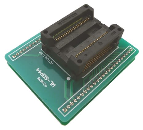 It accepts a SOP44 device and plug into a DIP socket