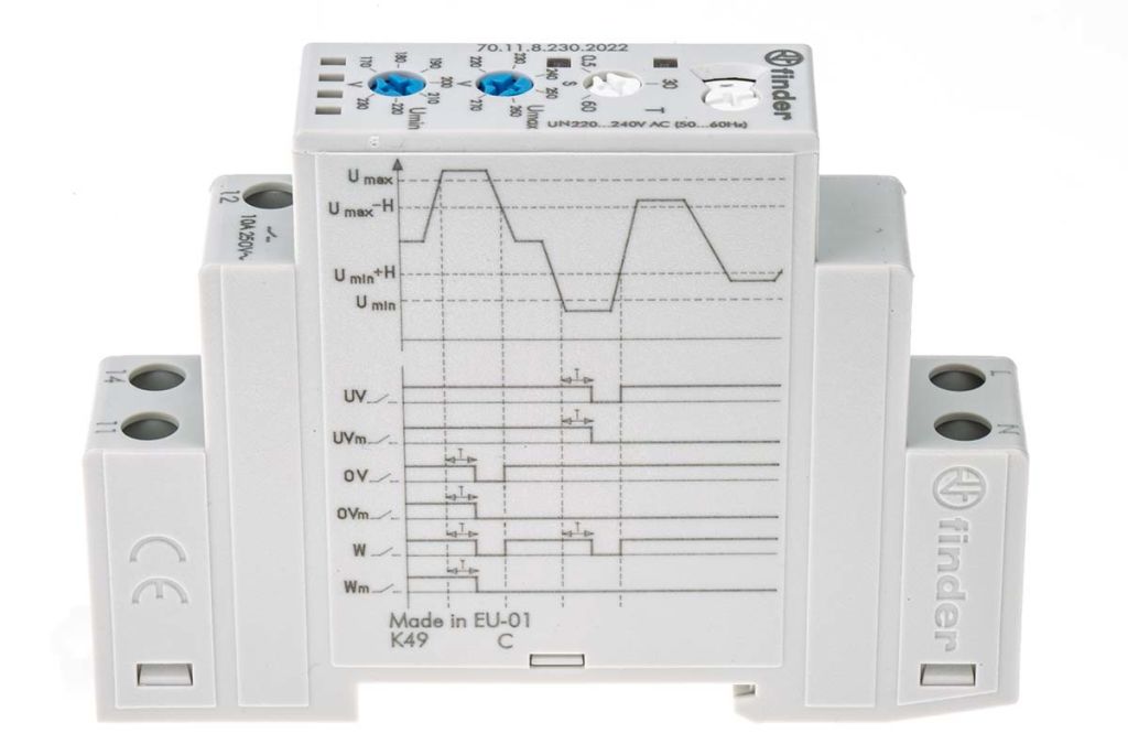 | Product description | Finder Voltage Monitoring Relay With SPDT Contacts, 1 Phase, Overvoltage Protection, Undervoltage Protection |