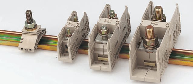The ’W’ series screw clamp terminals are suitable for ’Top Hat’ DIN Rail and manufactured from nylon 6.6 which has a continuous temperature rating of 120°C (180°C short term). They are self-extinguishing to UL94V-0 and free from cadmium and halogen. Current bars are constructed from 10 mm electrolytic copper to ensure a current loading more than nominal rating. Terminals are suitable for mounting on symmetric ’Top Hat’ rail only (BS5584:1978, EN 50022) and are touch proof in accordance with BS 3042.