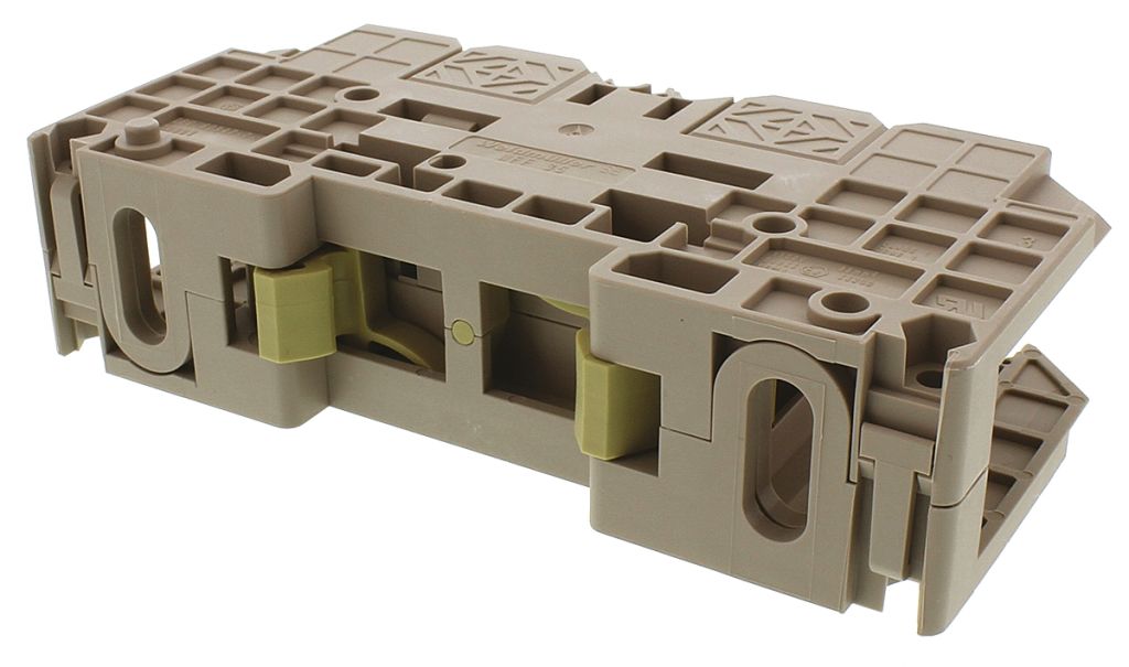 The ’W’ series screw clamp terminals are suitable for ’Top Hat’ DIN Rail and manufactured from nylon 6.6 which has a continuous temperature rating of 120°C (180°C short term). They are self-extinguishing to UL94V-0 and free from cadmium and halogen. Current bars are constructed from 10 mm electrolytic copper to ensure a current loading more than nominal rating. Terminals are suitable for mounting on symmetric ’Top Hat’ rail only (BS5584:1978, EN 50022) and are touch proof in accordance with BS 3042.