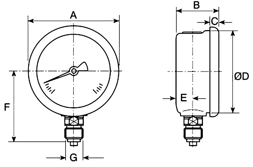 Pressure gauge suitable for use with gas and liquids that will not obstruct the pressure system or attack copper alloy parts. Applications include, hydraulics, compressors and shipping industry
