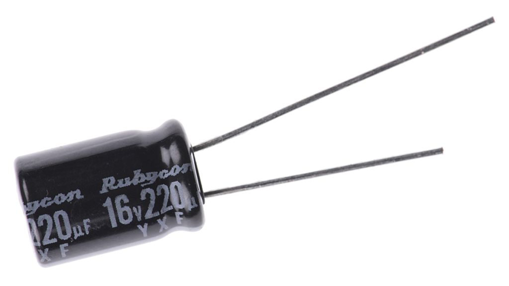 Rubycon 220μF Electrolytic Capacitor 16V dc, Through Hole – 16YXF220M8X11.5